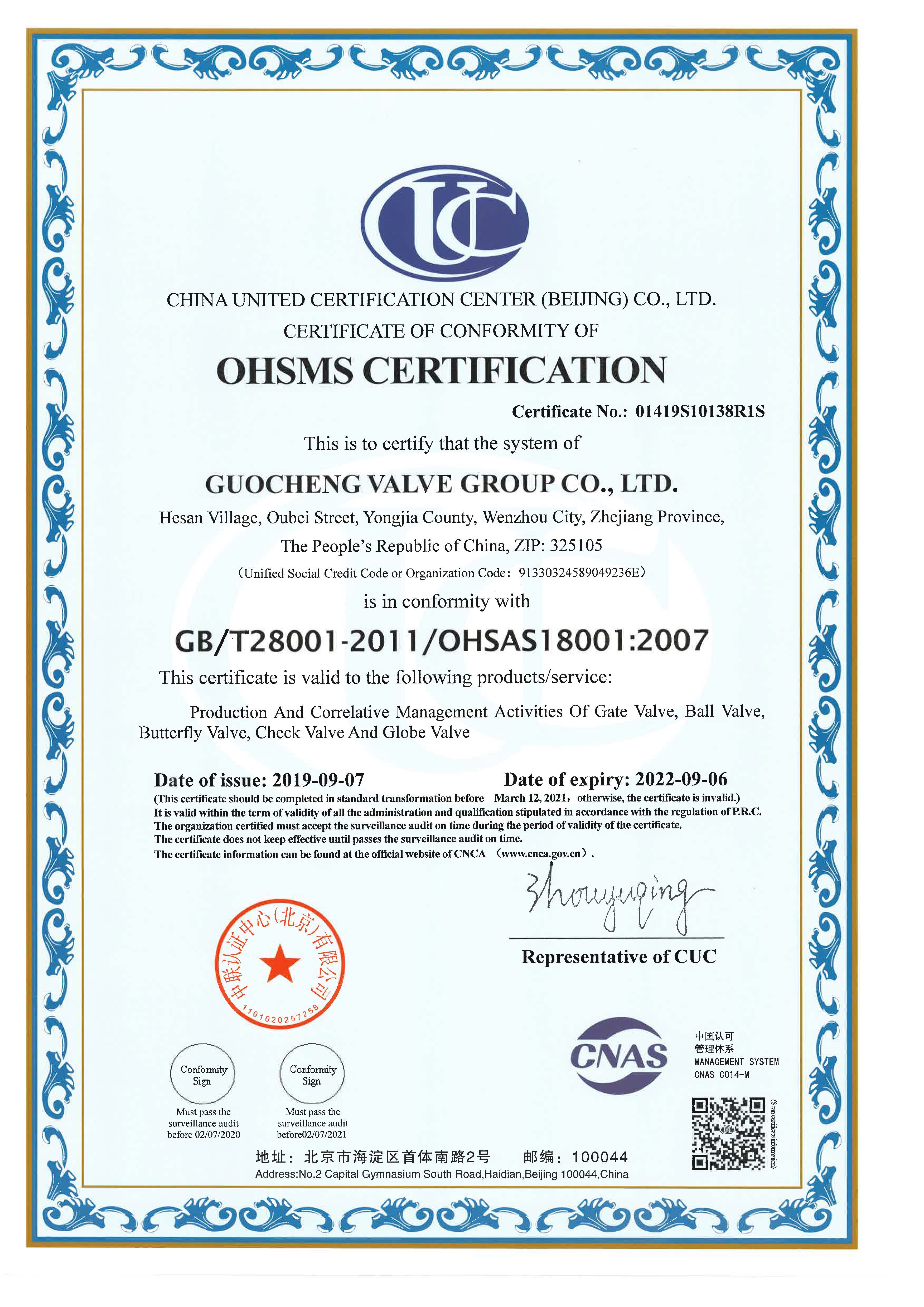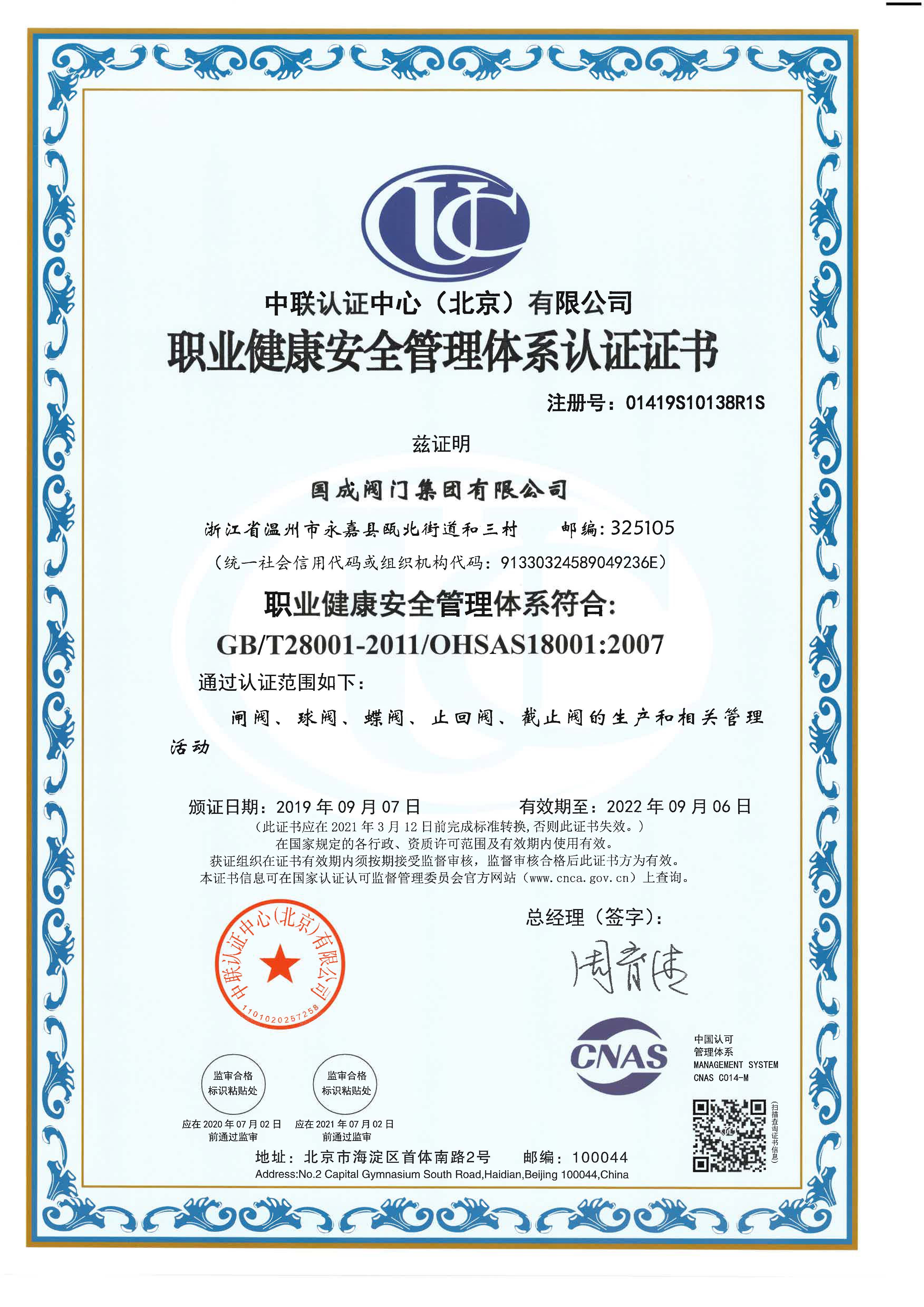 OHSAS18001職業(yè)健康安全管理證書(中)
