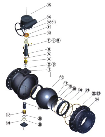 | 1 | 閥桿孔 | 16 | 球體 |