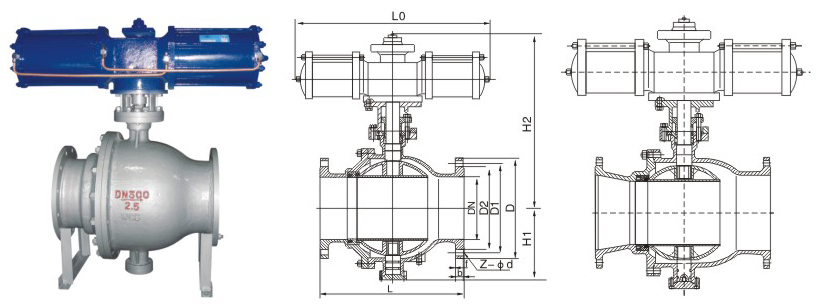 | DN | L | D | D1 | D2 | b | f | Z-pd | H1 | H2 | Lo | 重量(kg) Weight |